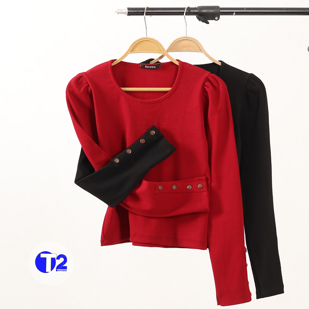 بلوز کراپ فانریپ آستین بلند مدل سینه اشکی