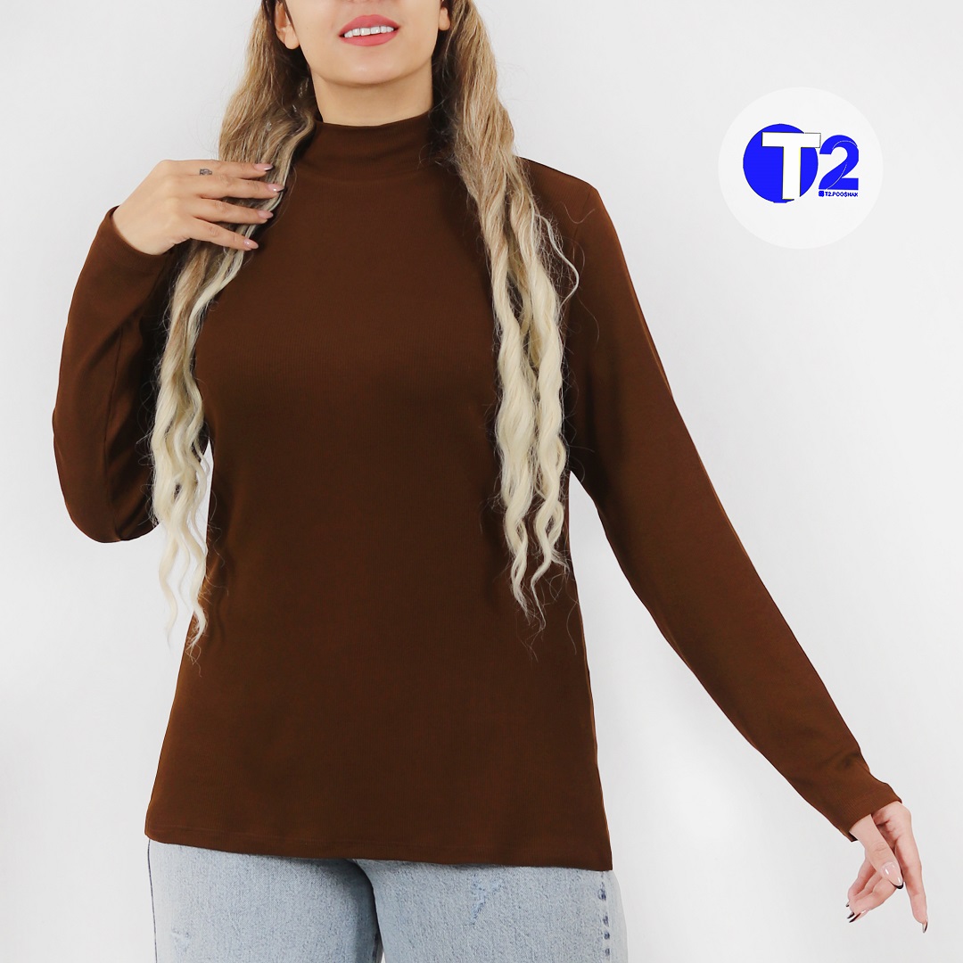 بلوز یقه ایستاده تک قهوه ای برشکا(3192)