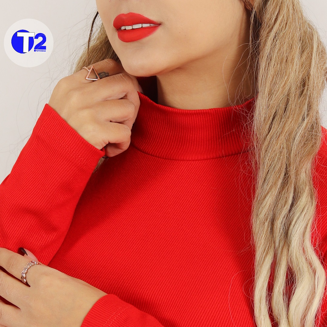 بلوز آستین بلند یقه ایستاده برشکا تک قرمز