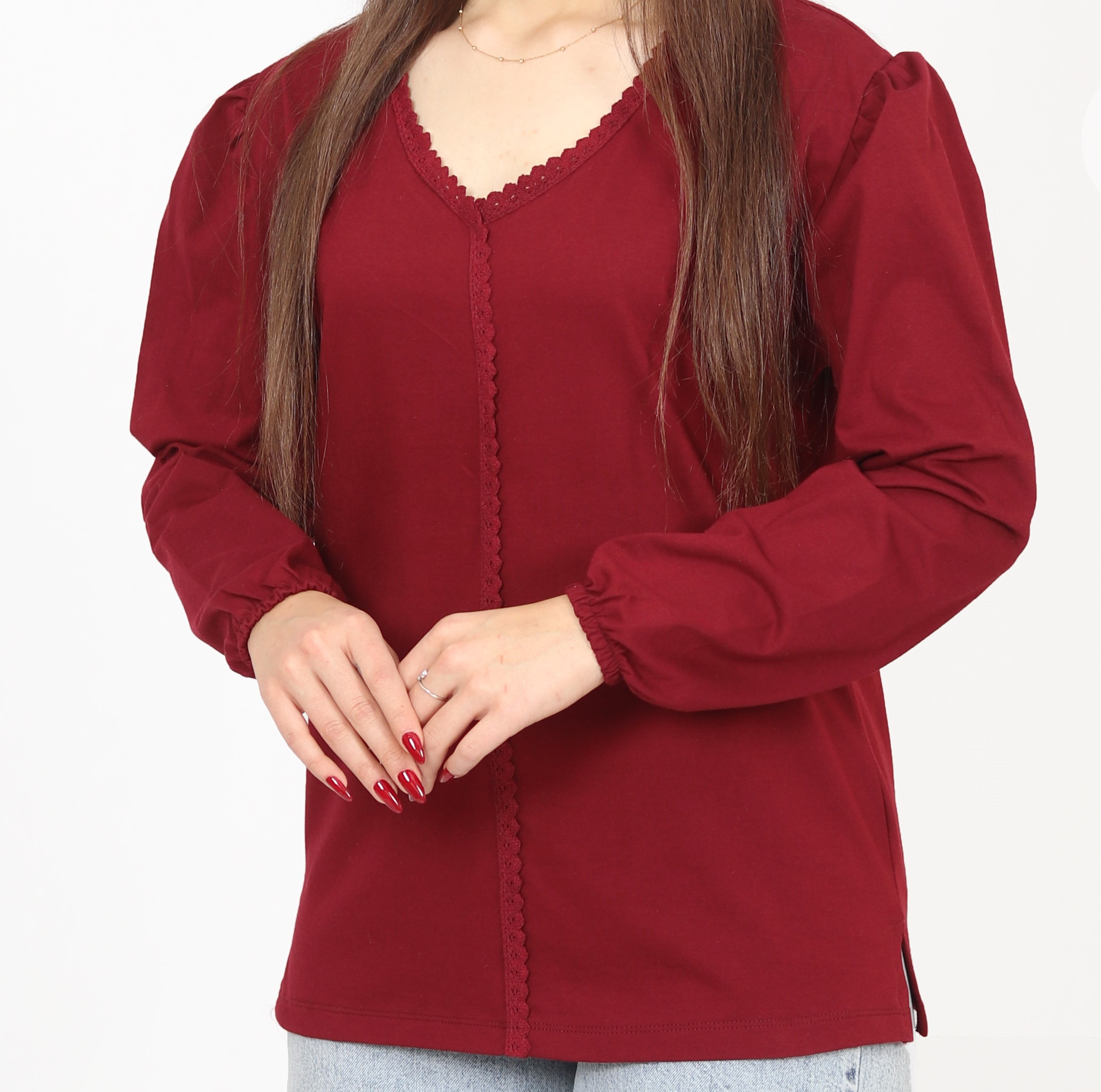 بلوز یقه کنفی آستین بلند قواره دار(3130)