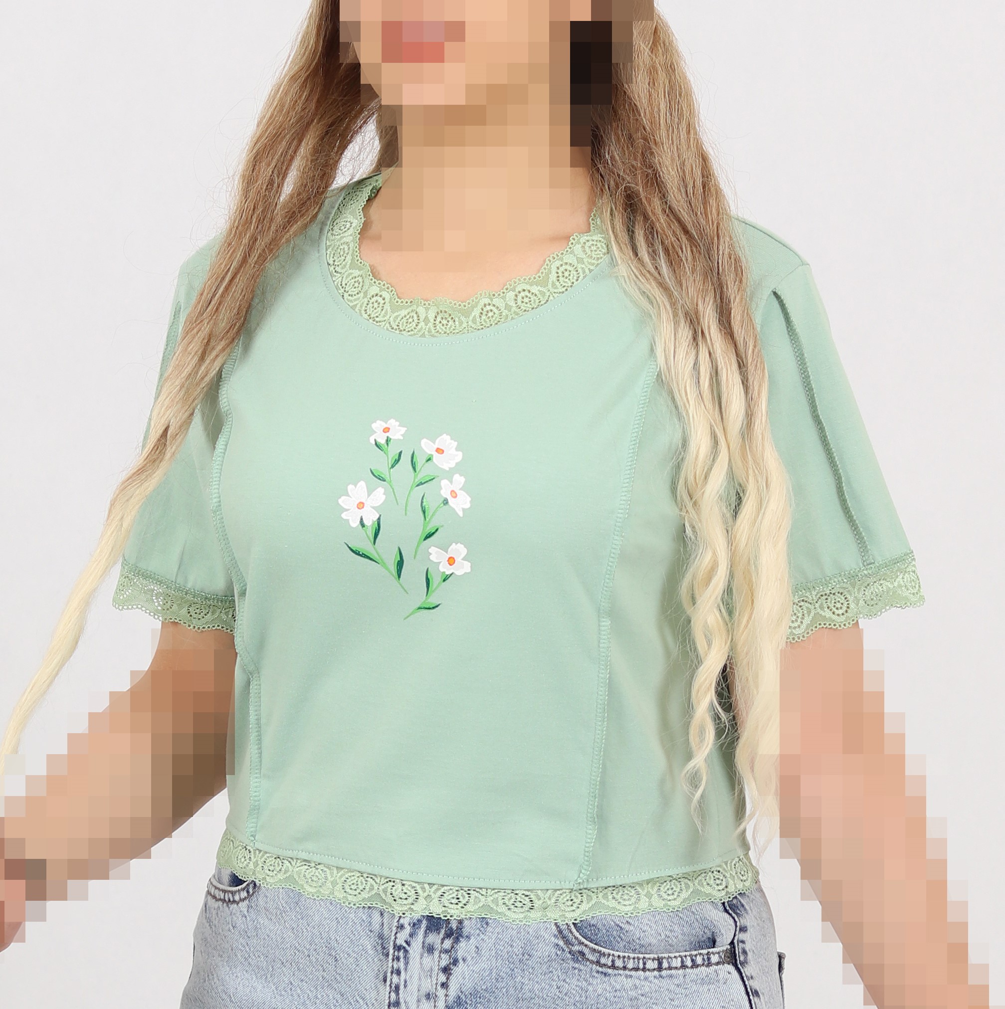 تیشرت باکسی گیپوری شکوفه آبی بادوختهای ازرو وبرجسته یه کارخاص
