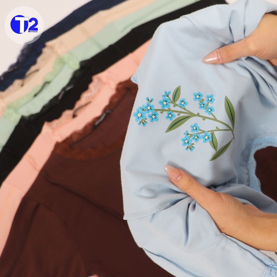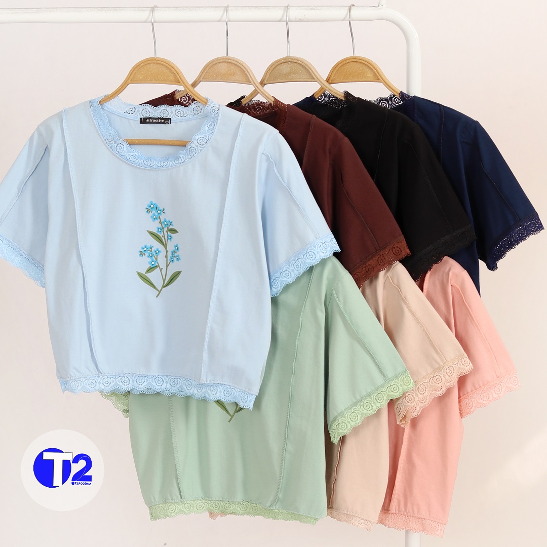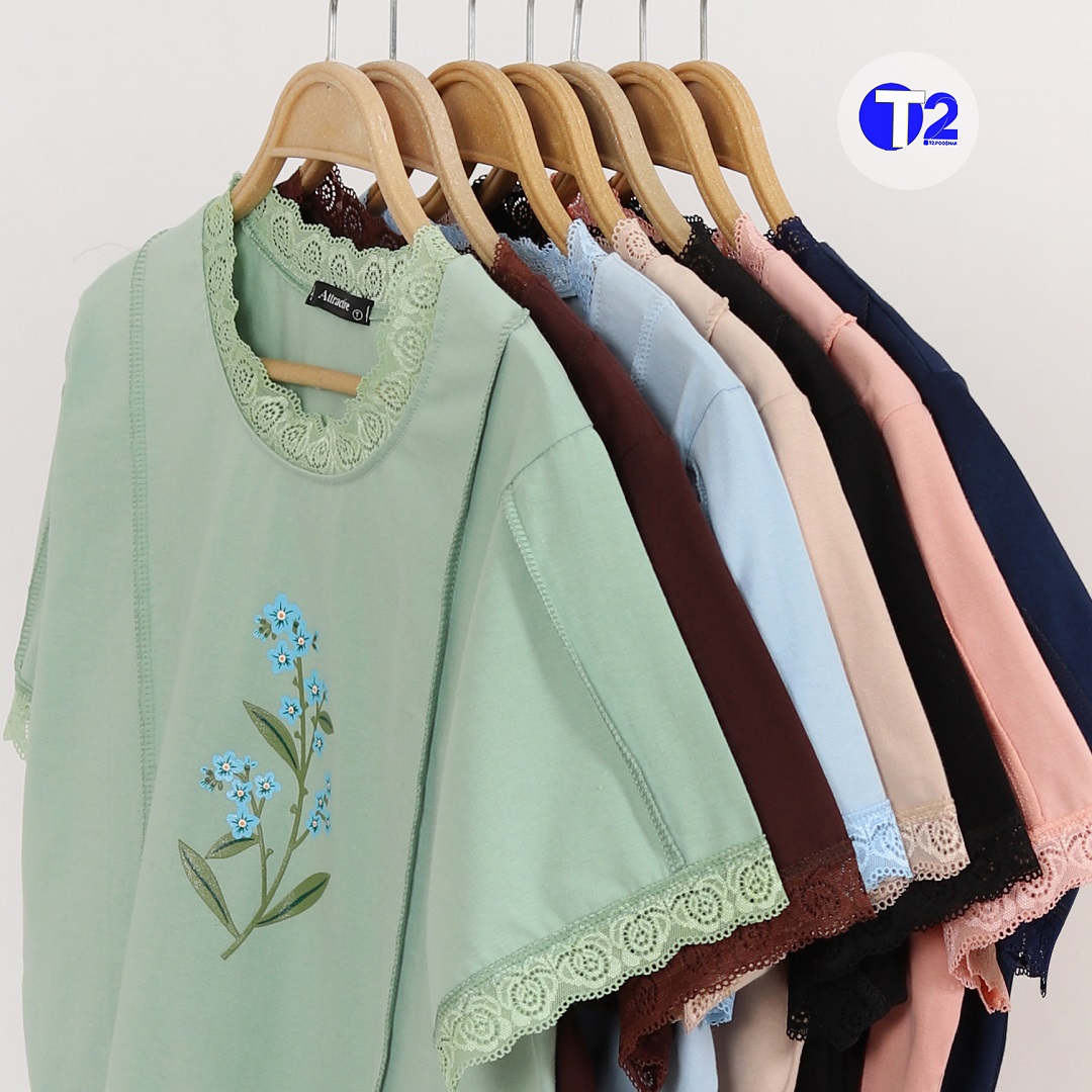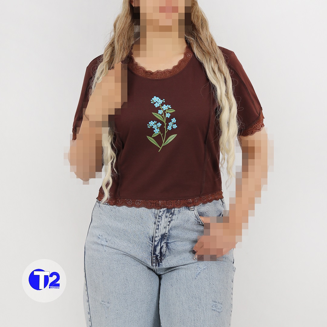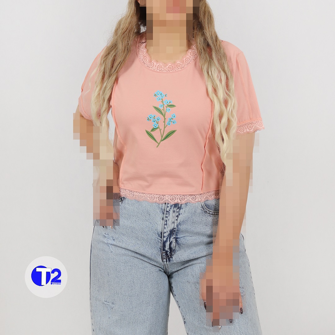 تیشرت باکسی گیپوری شکوفه آبی بادوختهای ازرو وبرجسته یه کارخاص