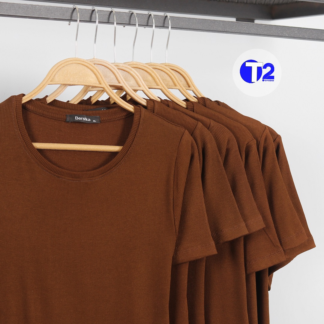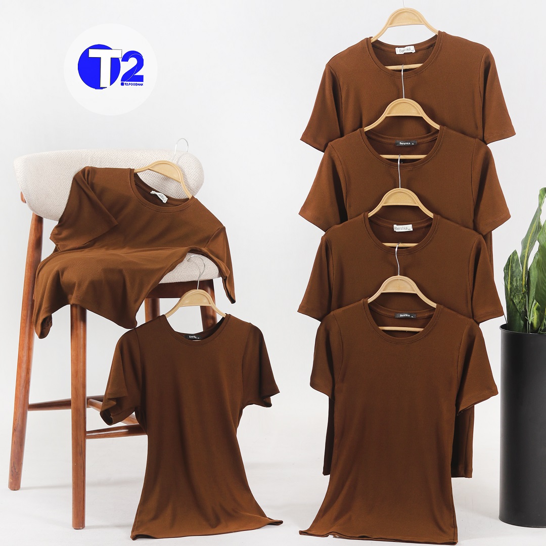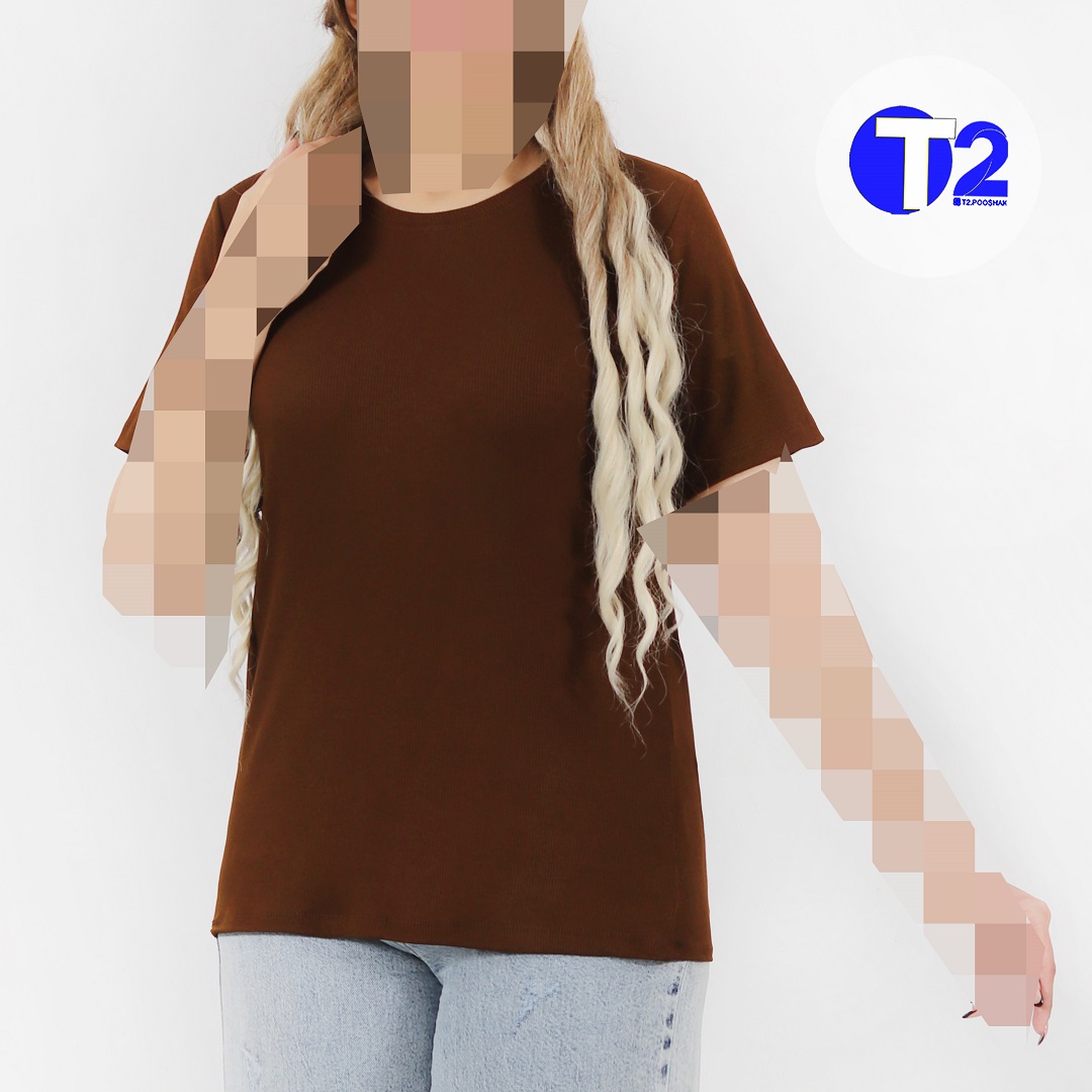 تیشرت یقه گرد برشکا تک قهوه ای موجود در دوسایز 1/2