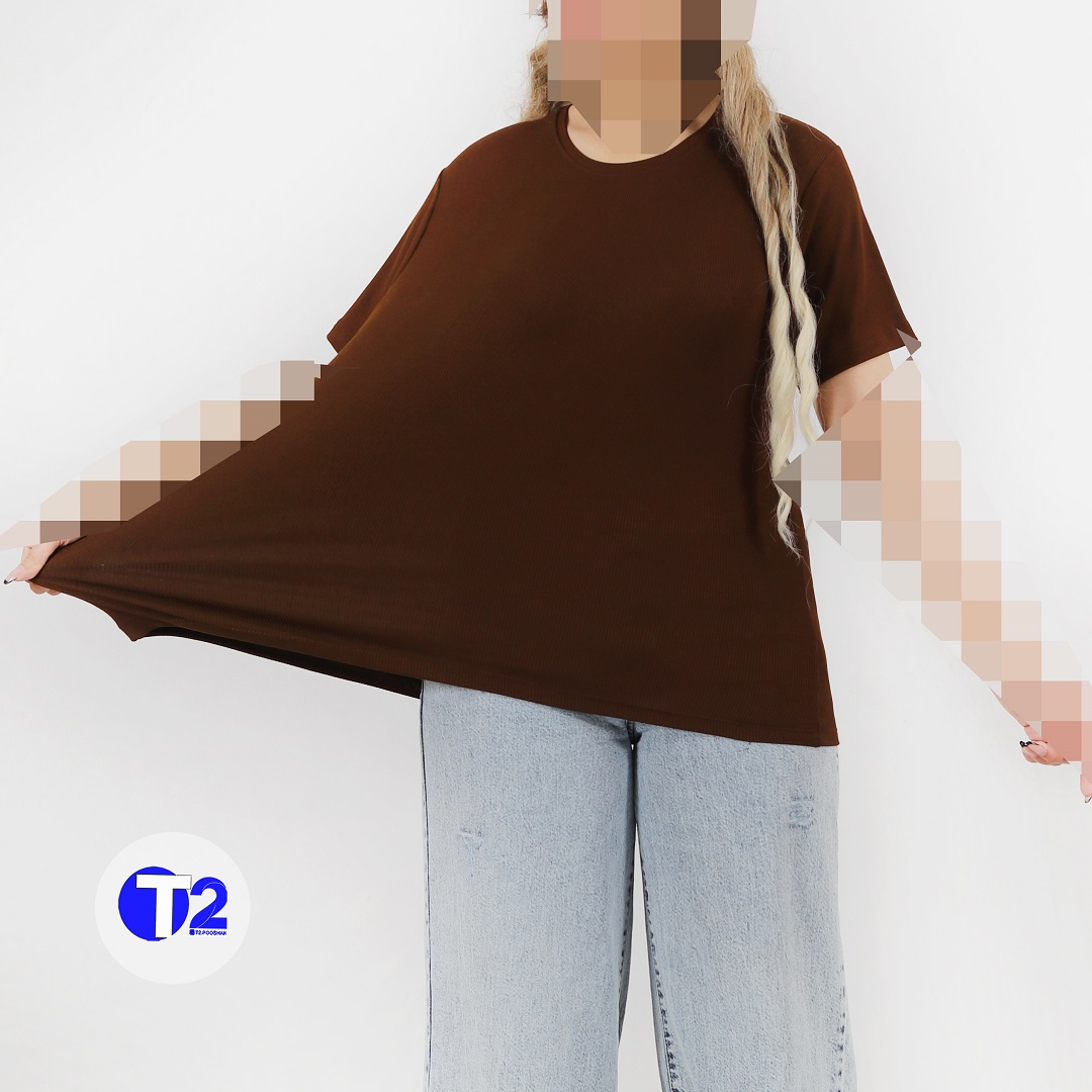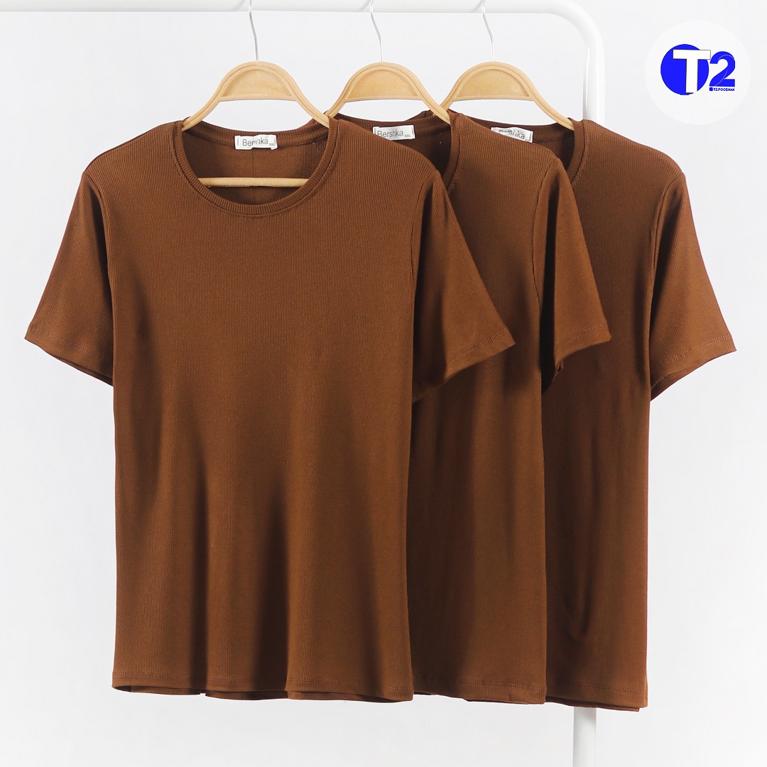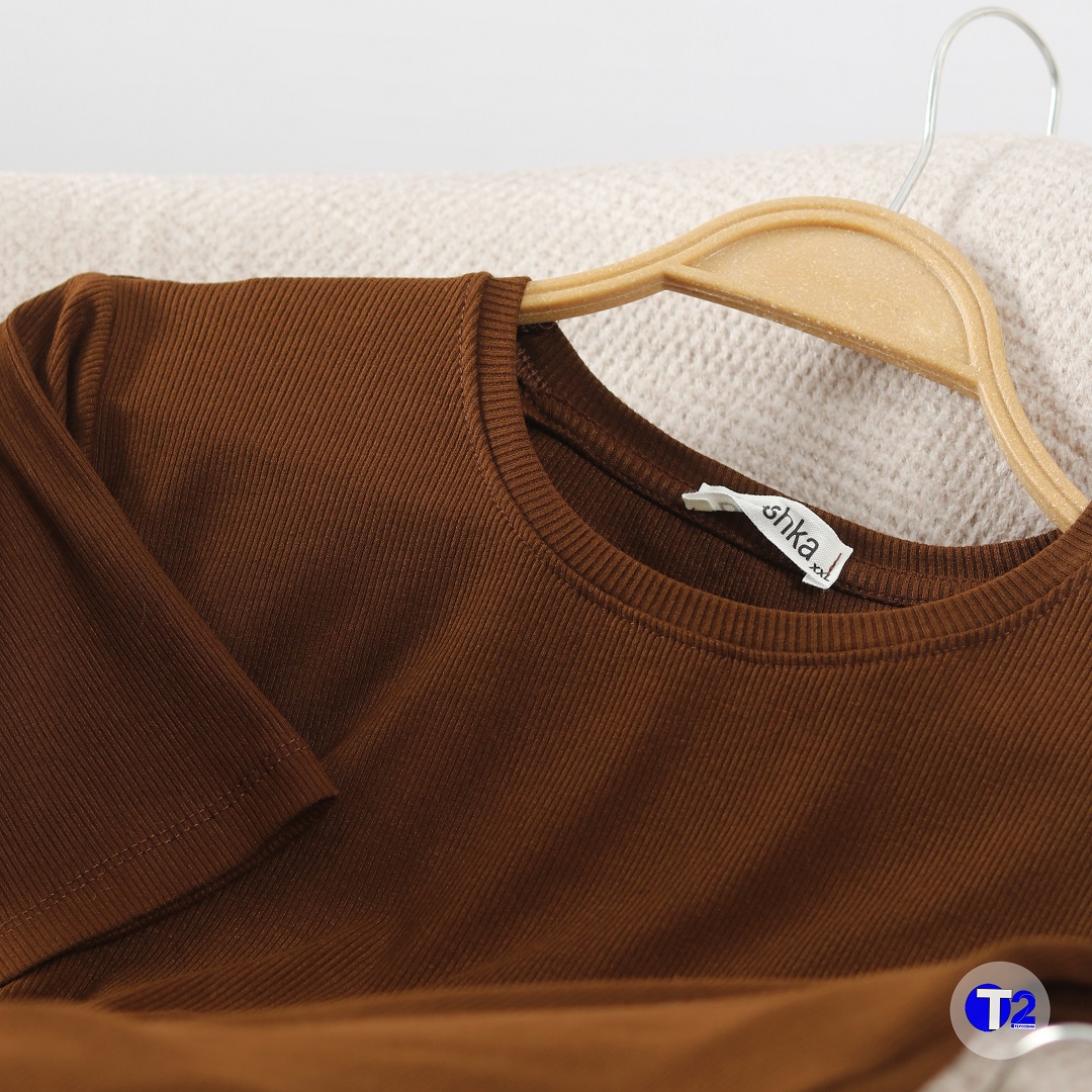 تیشرت یقه گرد برشکا تک قهوه ای موجود در دوسایز 1/2