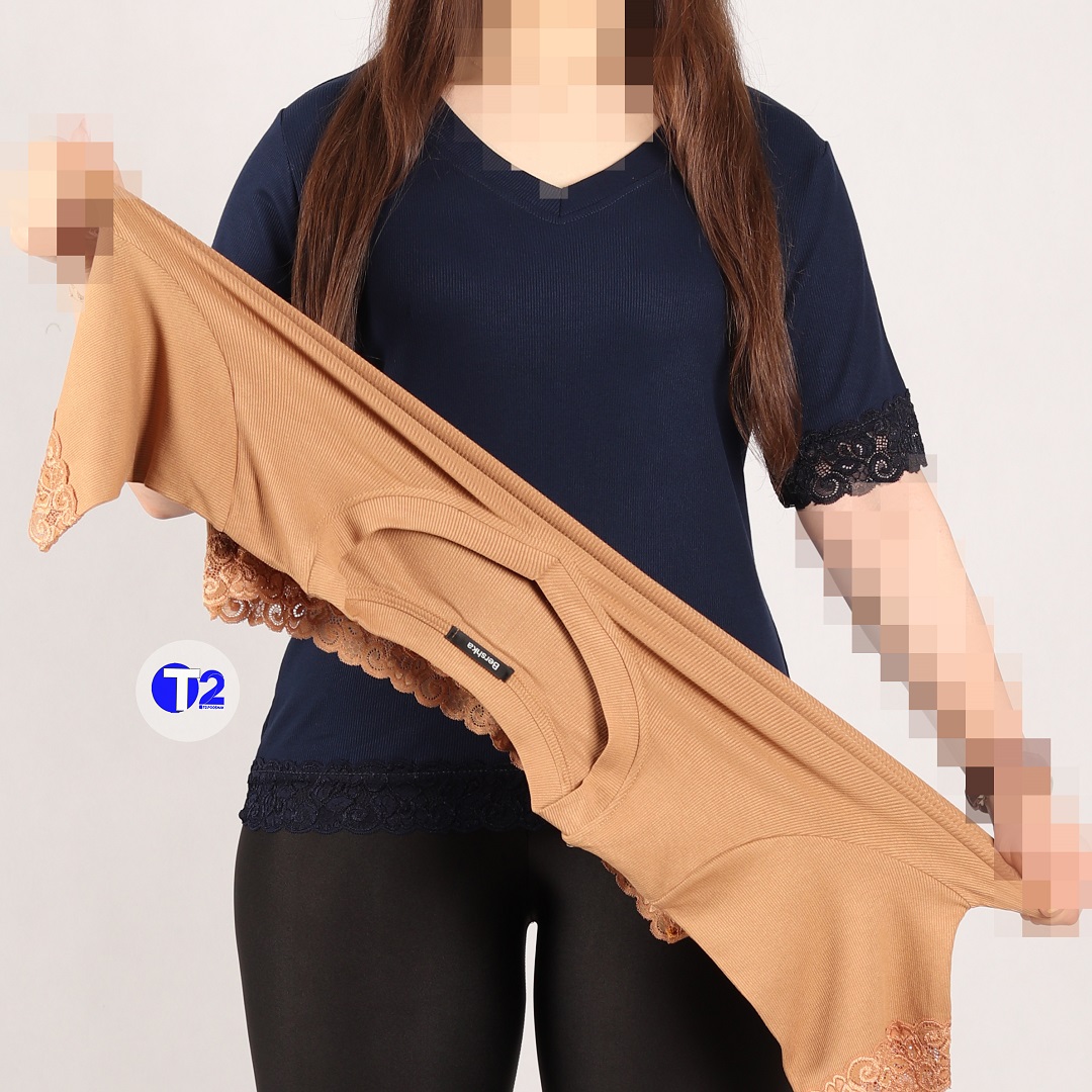 تیشرت کبریتی بیگ سایز برشکا یقه هفت گیپوردار