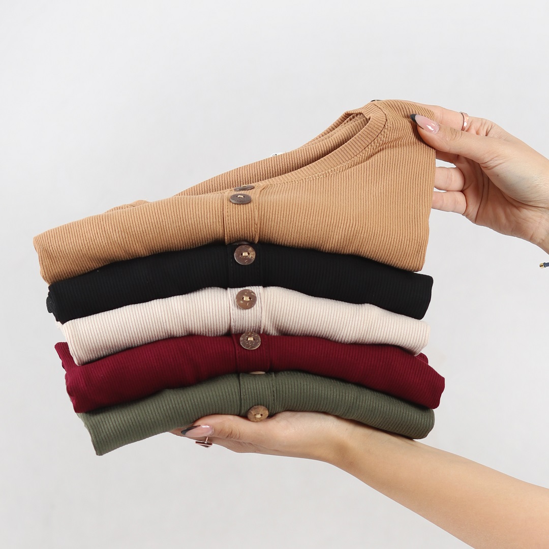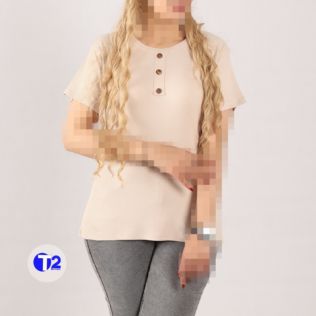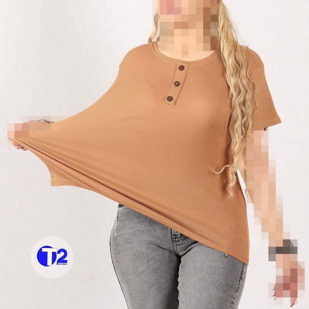 تیشرت کبریتی بیگ سایز برشکا یقه گرد جلو کار دکمه چوبی