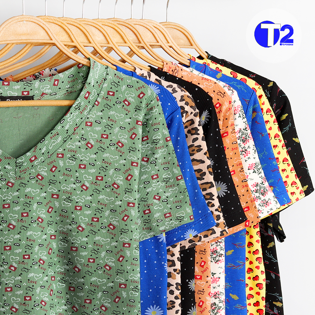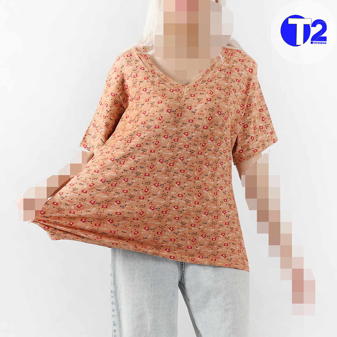 تیشرت یقه هفت برشکا چاپی بیگ سایز (3311)