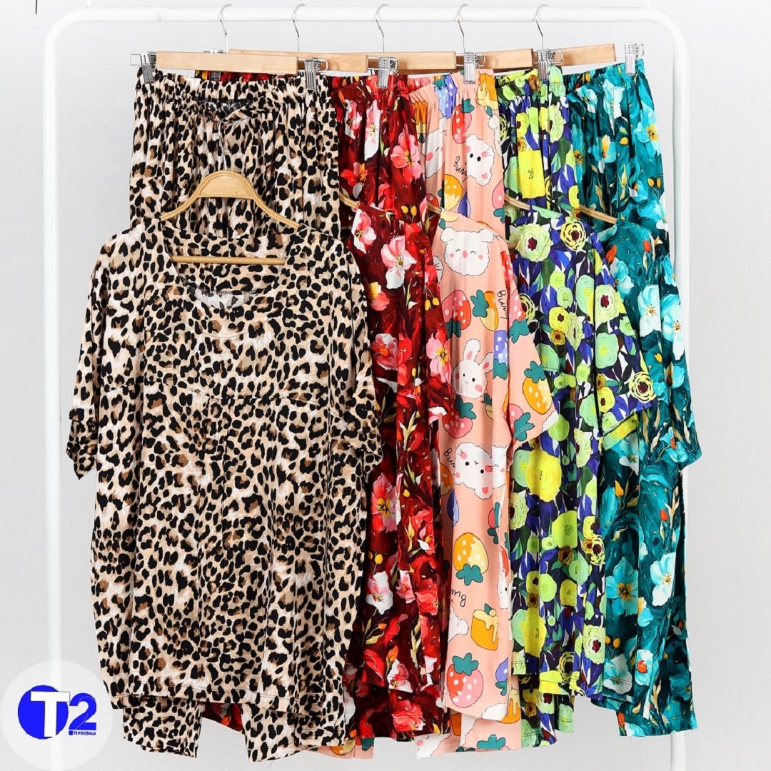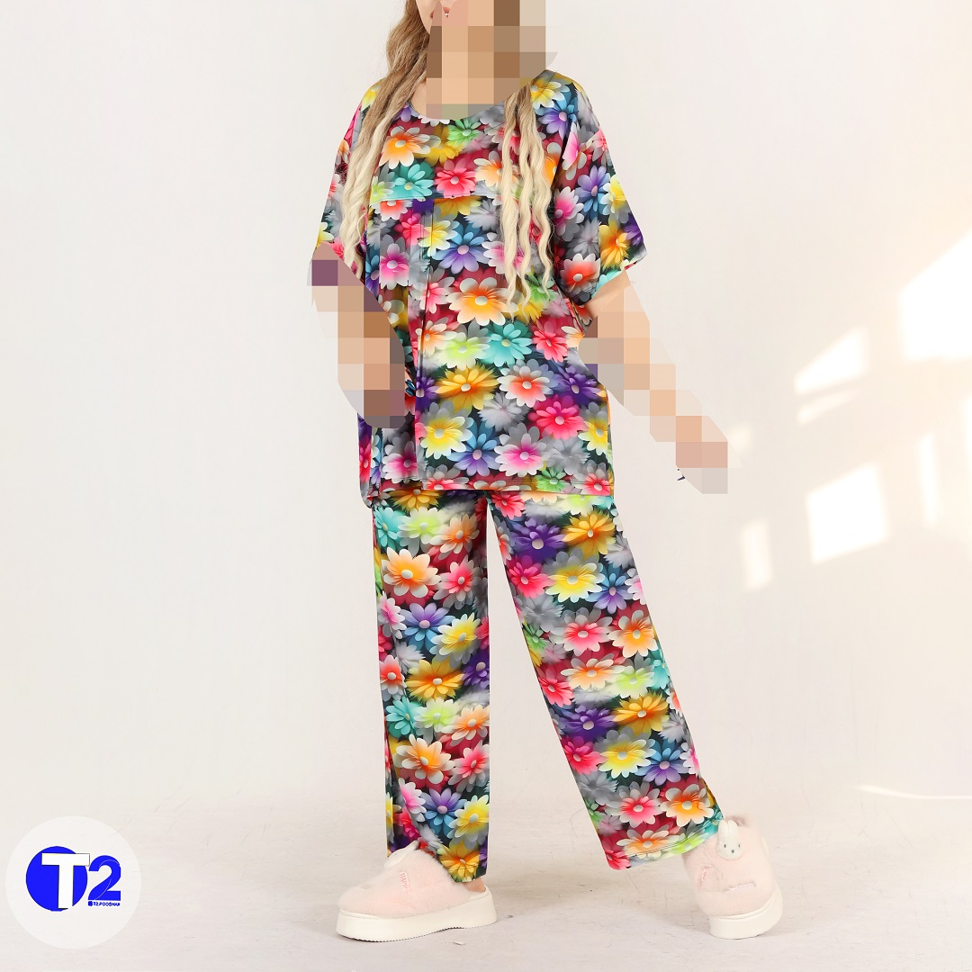 ست تیشرت وشلوار جلوپیله دار نخی سه بعدی (2844)