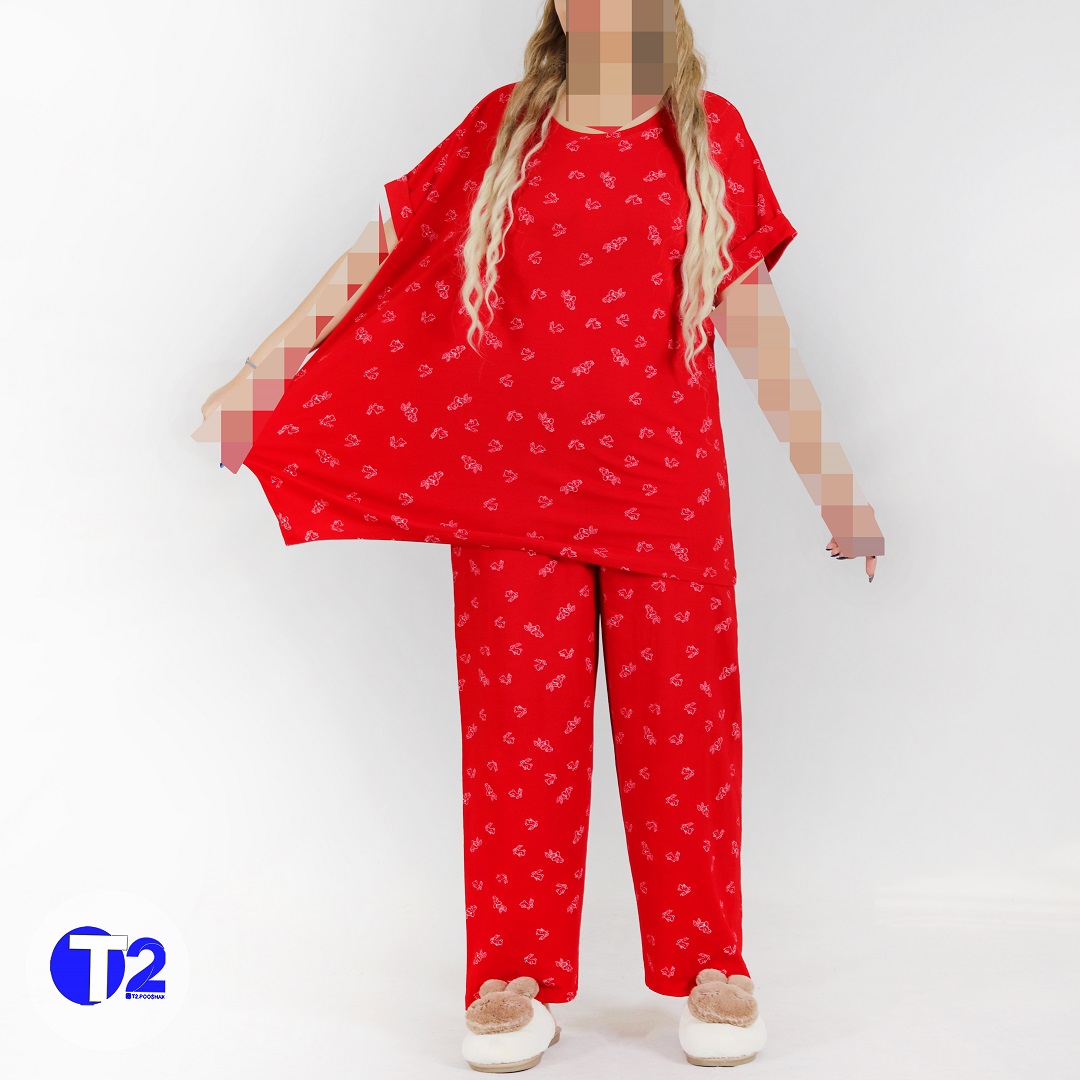 ست تیشرت وشلوار پلاس سایز پنبه لاکرا(3263)