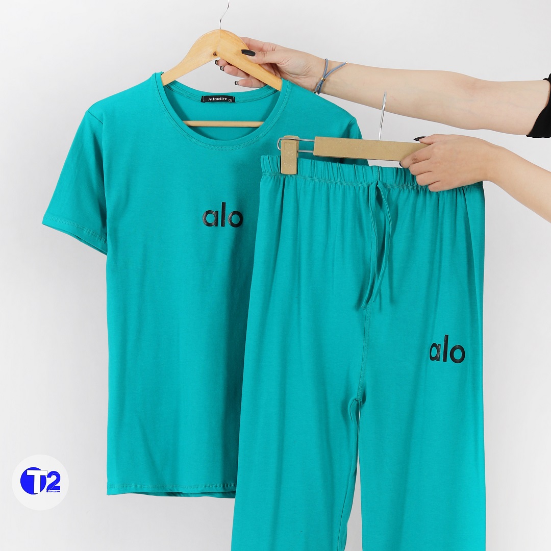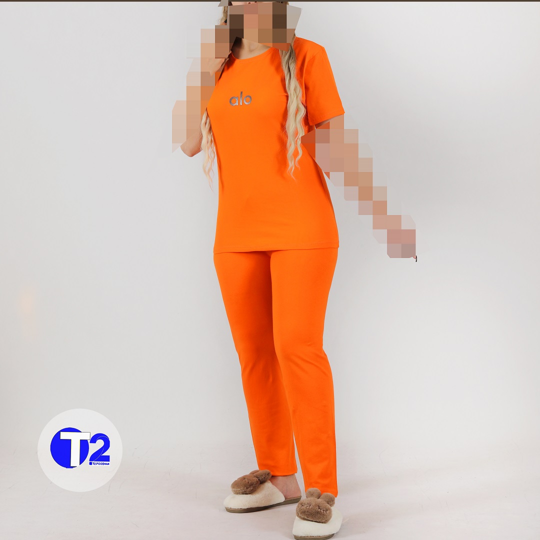 ست تیشرت وشلوار پنبه لاکرا الو (3236)