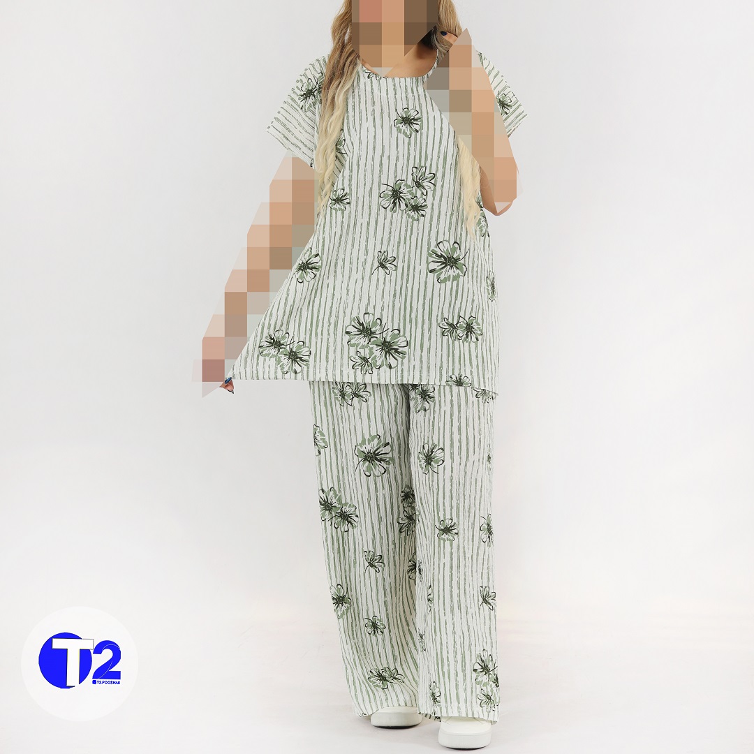 ست تیشرت وشلوار کراش نخ طرح گل(3275)