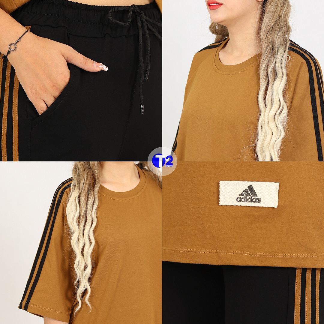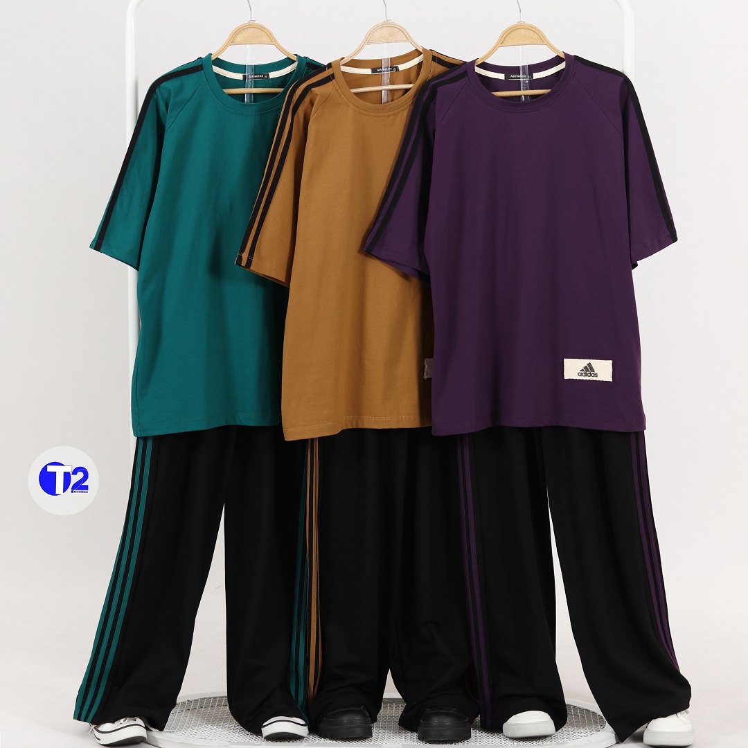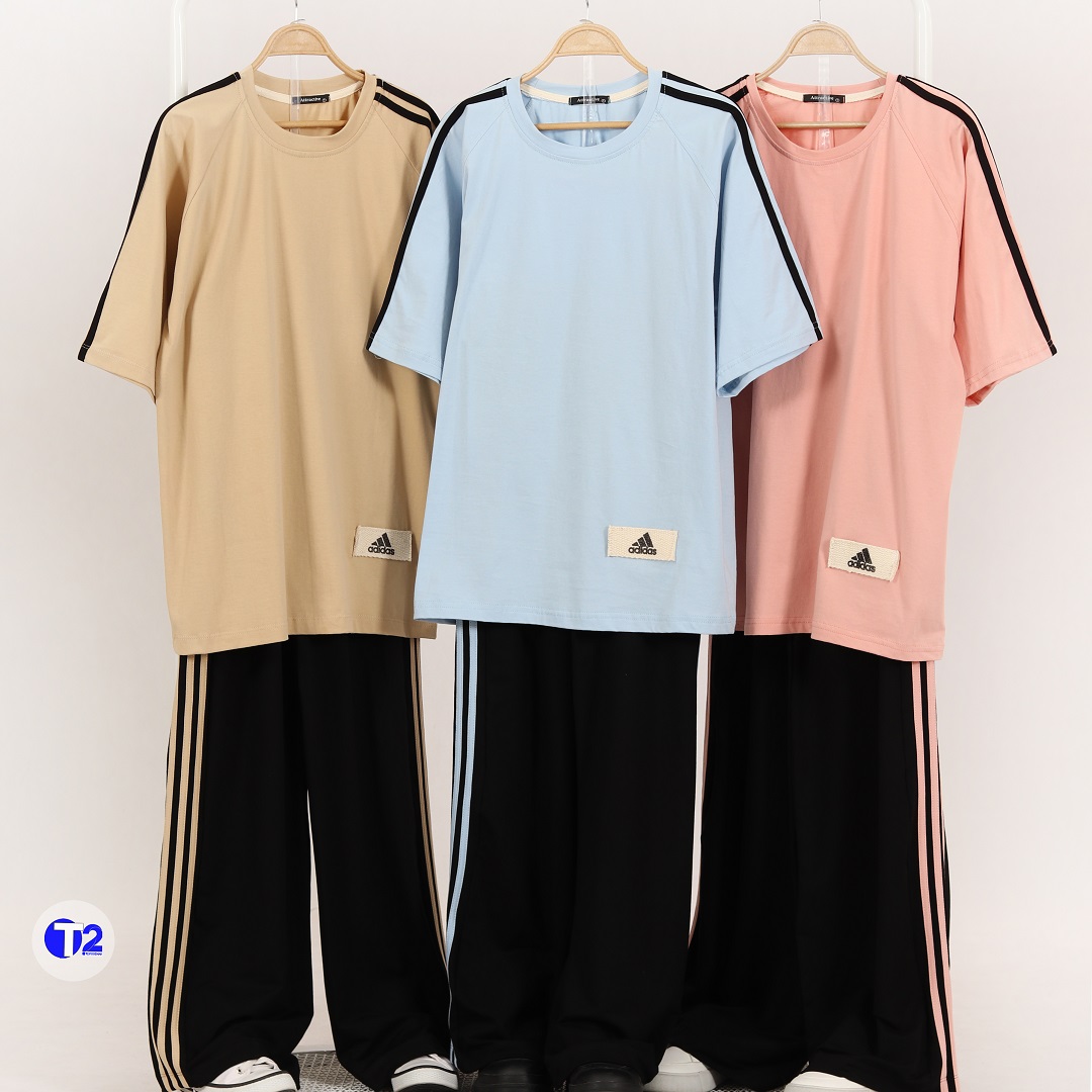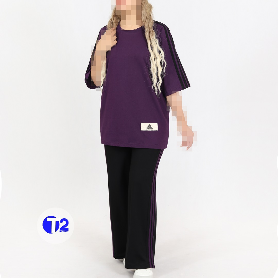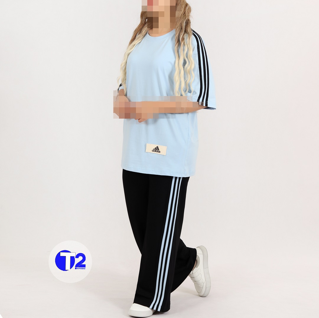 ست تیشرت لانگ وشلوار بگ پنبه گلکسی بغل نواری