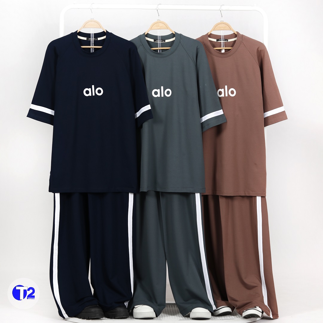 ست تیشرت لانگ وشلوار بگ پنبه گلکسی بغل نواری