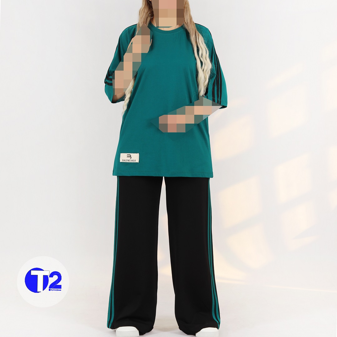 ست تیشرت لانگ وشلوار بگ پنبه گلکسی بالنسیاگا