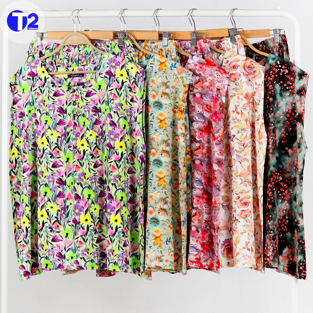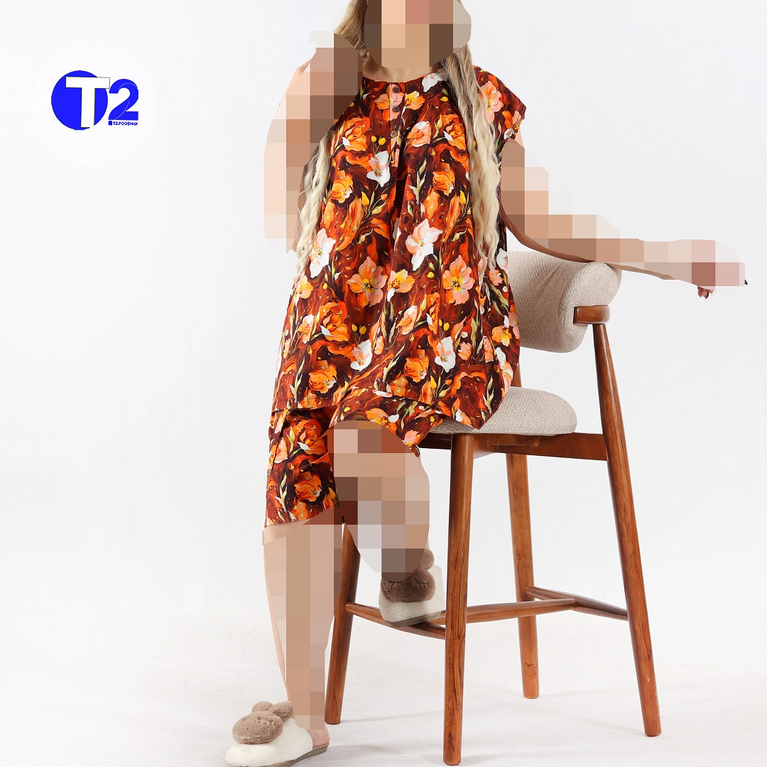 ست تاپ وشلوارک جلو دکمه نخی تایلندی قواره دار