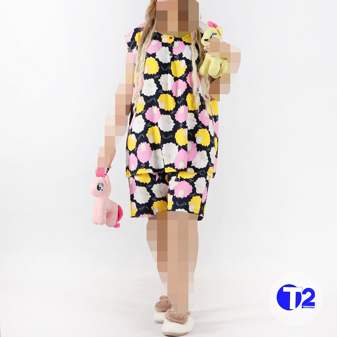 ست کات دکمه دار وشلوارک نخی سه بعدی (3294)