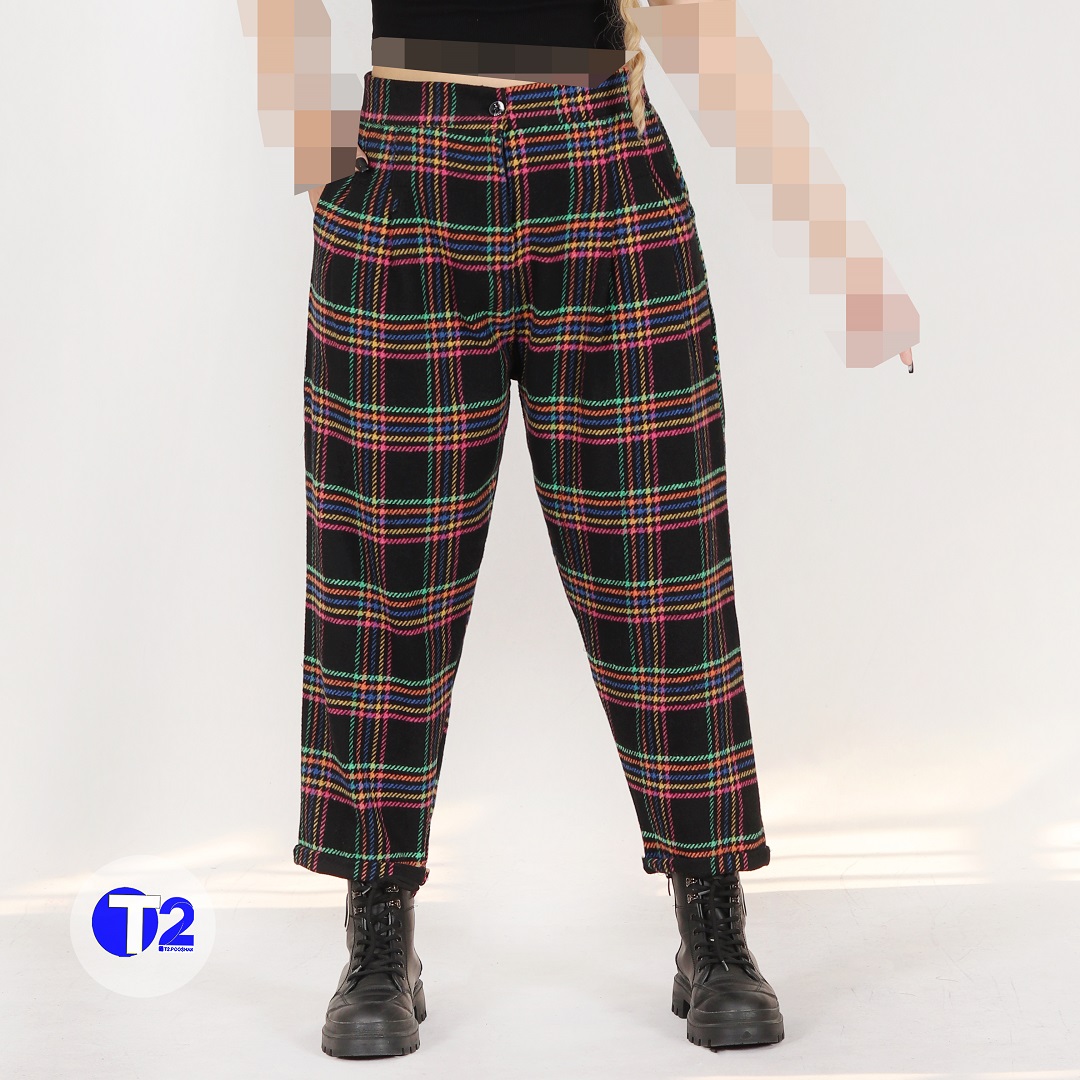 شلوار مام استایل چهارخونه پشمی